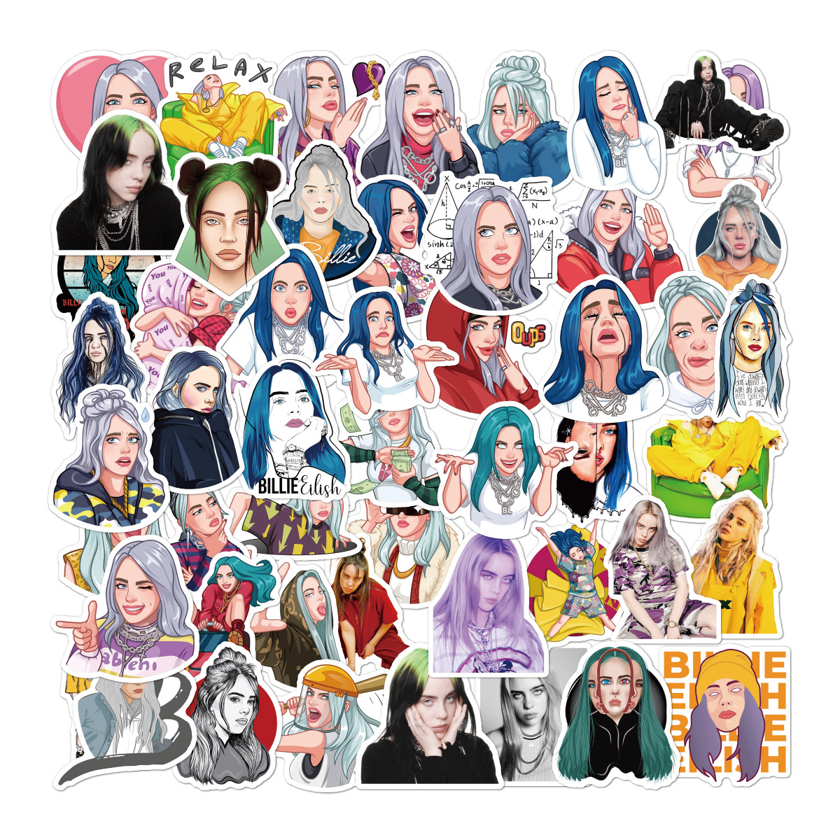 1) Product Name: All 50 Luggage Guitar Stickers PVC Graffiti Singer Billie Eilish Stickers