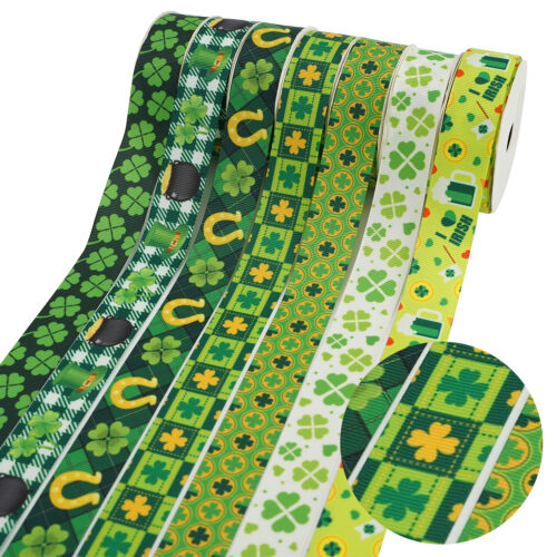 St. Par Ribbon 2.5cm Shamrock Dot Irish Festival Ribbon St. Parcel Ribbon with Heat Transfer